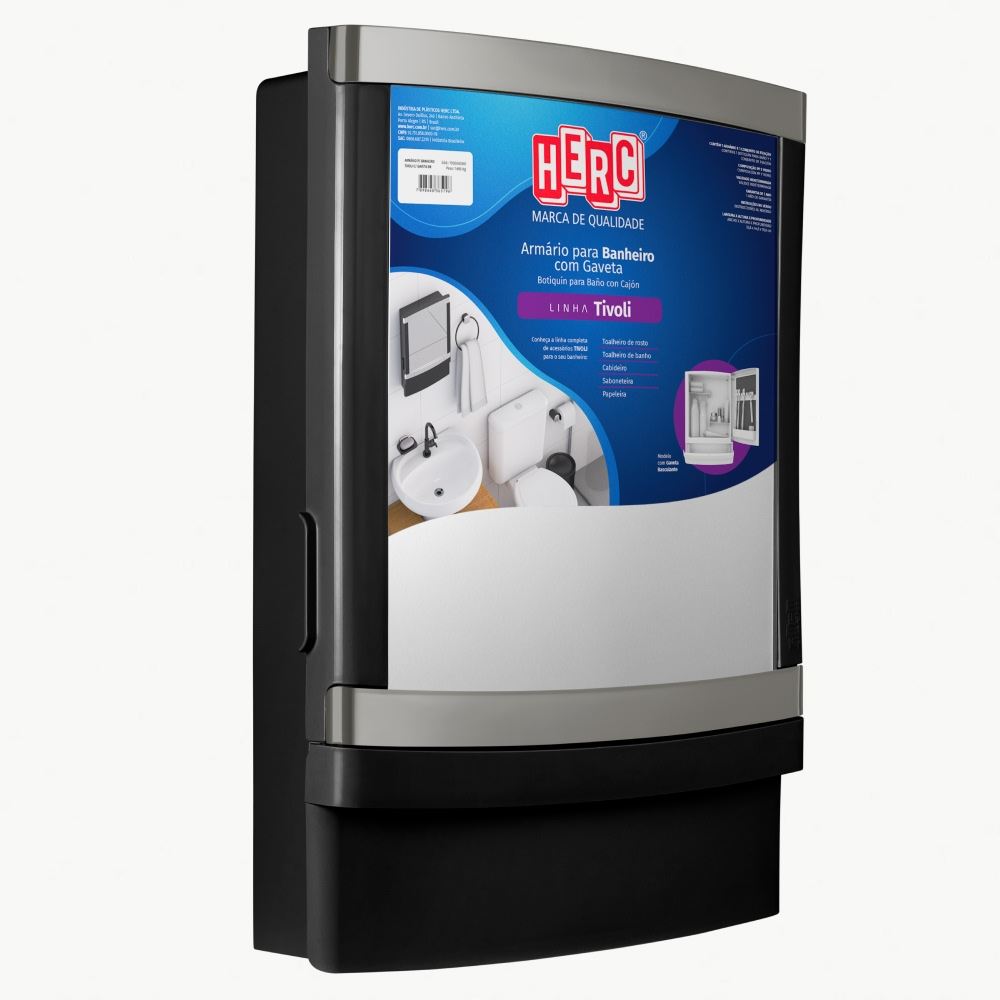 Armário para Banheiro em Polipropileno 33x44,5 com Gaveta Tivoli Preto e Cinza HERC / REF. 1000000987