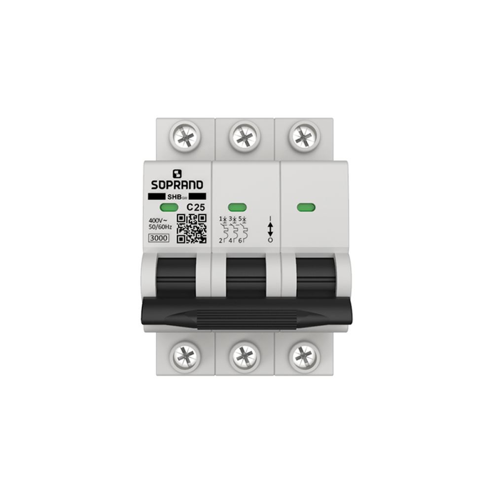 Disjuntor, Tripolar, 25A, DIN, SHBG3, Eletricidade, Soprano