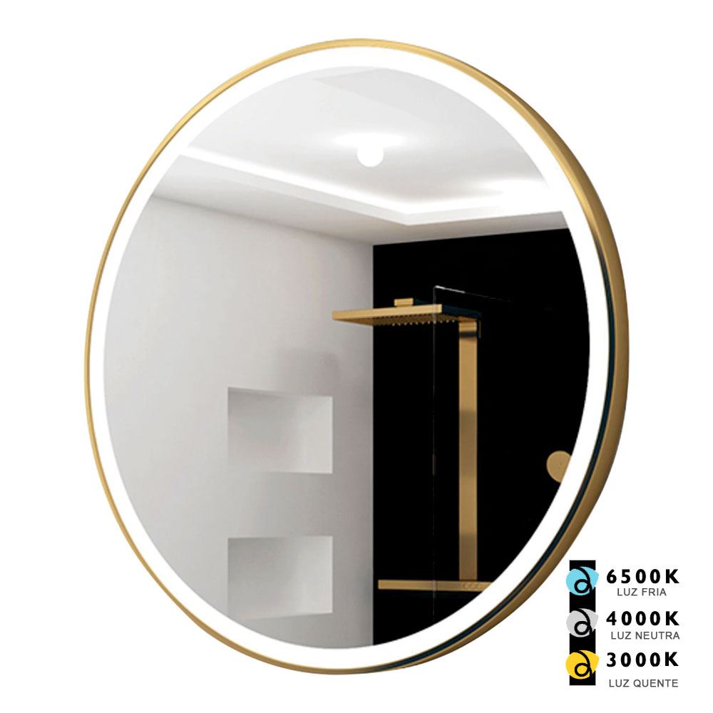 Espelho, Led, Emoldurado, 60cm, Redondo, Louise, Dourado, 3 Temperaturas, Dourado, Design Decor