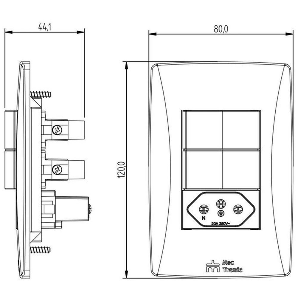 Interruptor Duplo Simples 4x2 Soft + 1 Tomada 2P+T 20A/250VCA com Placa Petra Branco MECTRONIC / REF. 39845