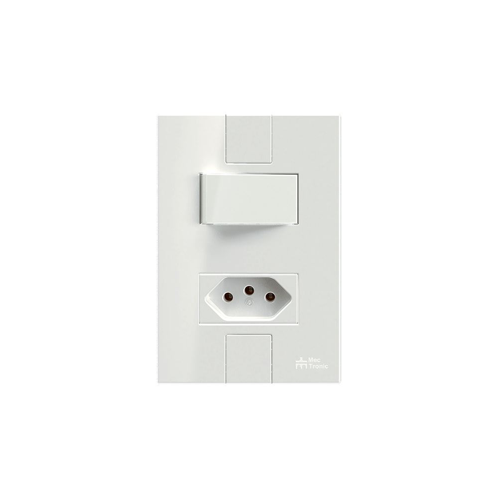 Interruptor Simples 4x2 Soft + Tomada 2P+T 20A/250VCA com Placa Click Branco MECTRONIC / REF. 49092