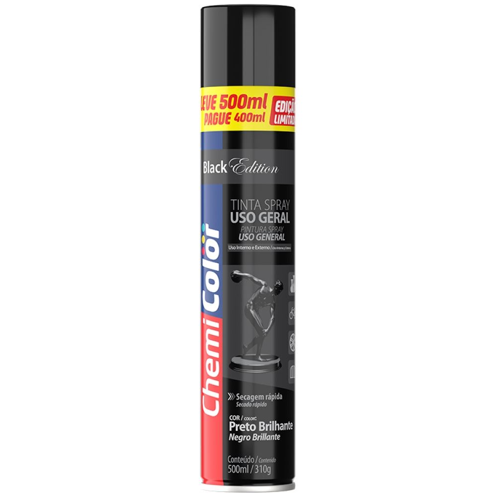 Tinta Spray para Uso Geral 500ml Preto Brilhante CHEMICOLOR / REF.0680635